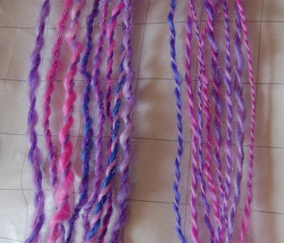 Anyway this is my new yarn, cool huh? The stuff on the right is my second attempt. Don’t know what kind of fibre it is, as I had bought the roving from Fyberspates to do some needlefelting with as I loved the colours, its a little scratchy, but I like it, probably won’t knit anything with it but I can look at it.