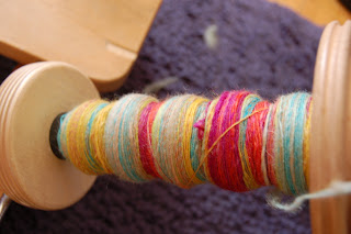 And finally, a little spinning, this was my reward for doing all the laundry, a little spinning in between loads, well I had to have something, I hate holiday laundry. This is the bfl I dyed with the ladies from the french spinning forum, I have about 200m 2ply, drying, I think I will knit something for my friends birthday as it is very bright, pictures soon.