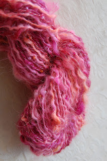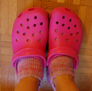 More pink, these feet are wearing anklets, handknit by me, in one of my first handspun yarns,